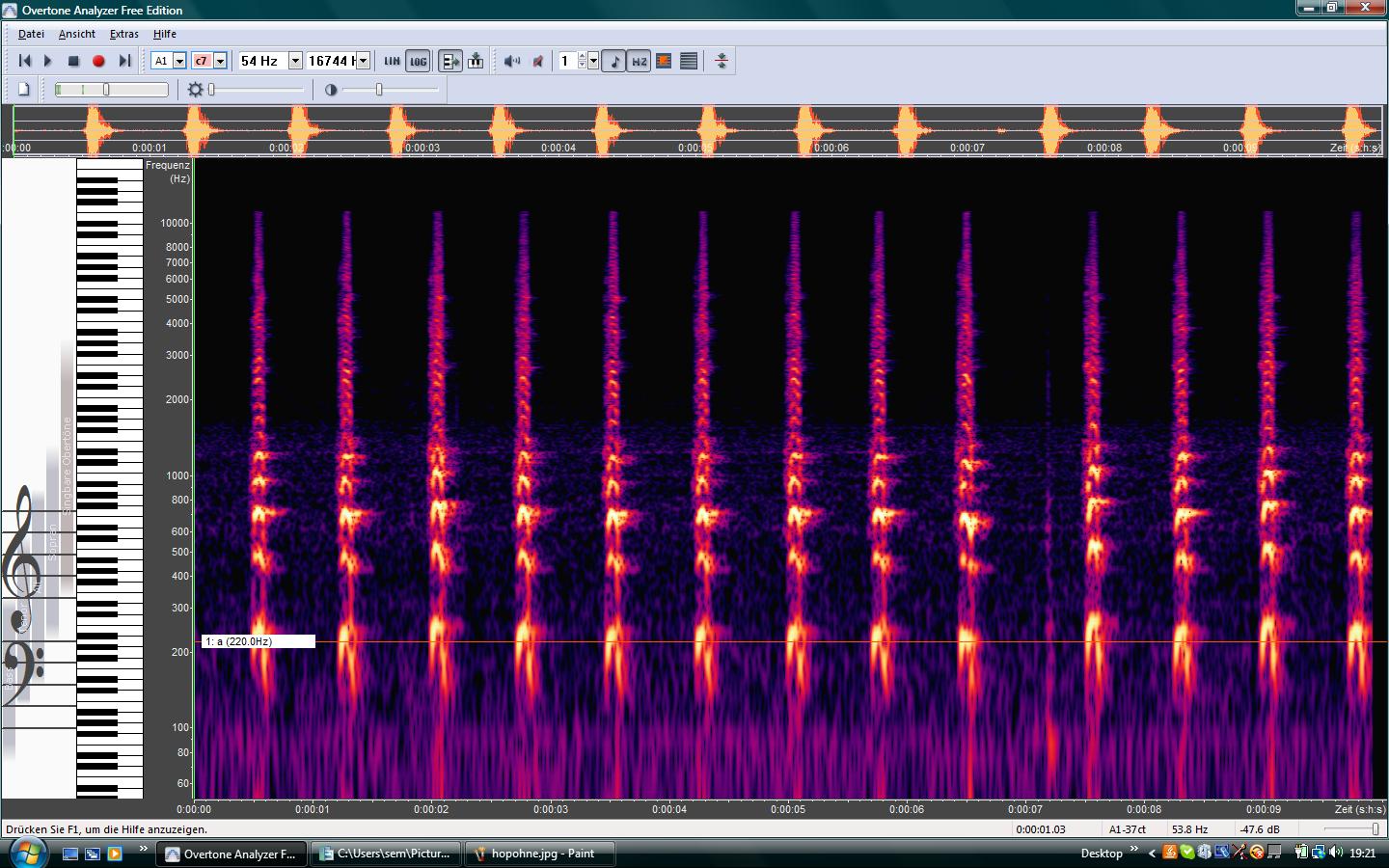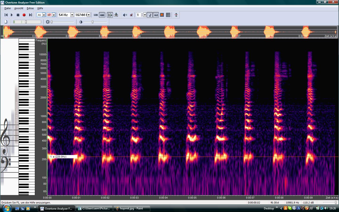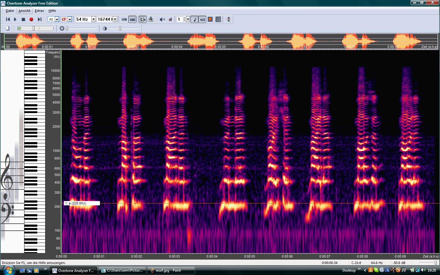 Die Tonqualität ist erkennbar an der Frequenz-Skala. Um so mehr gelb zu sehen ist um so voller und SCHÖNER klingt Ihr Sprechton für den Zuhörer. Die Klangfarbe der Eigenwahrnehmung ist dann sehr nahe an dem Klangerlebnis, das Sie dem Zuhörer bieten. Sie sollten diese Übungen laut trainieren damit sich die Klangtechnik entwickeln kann.