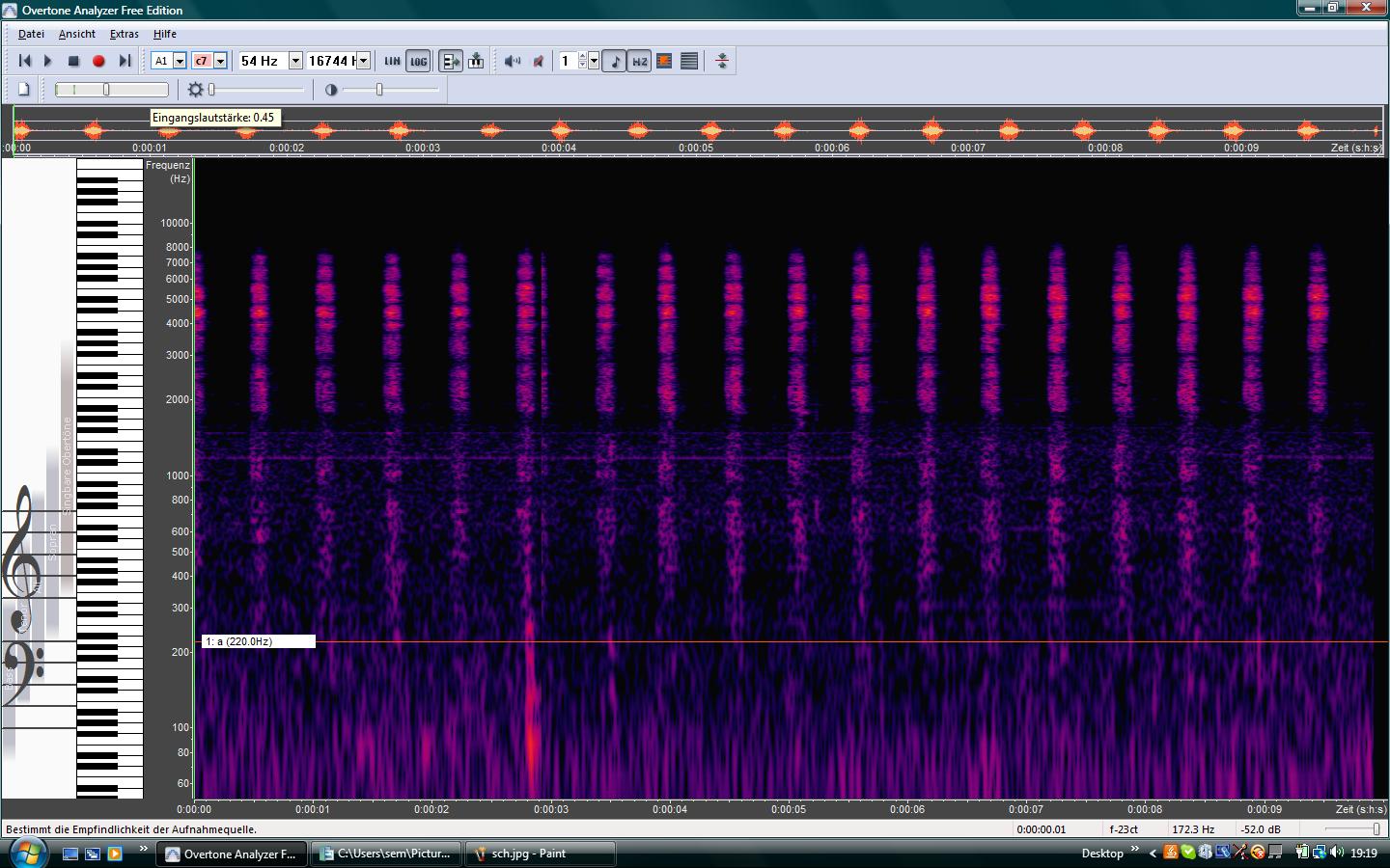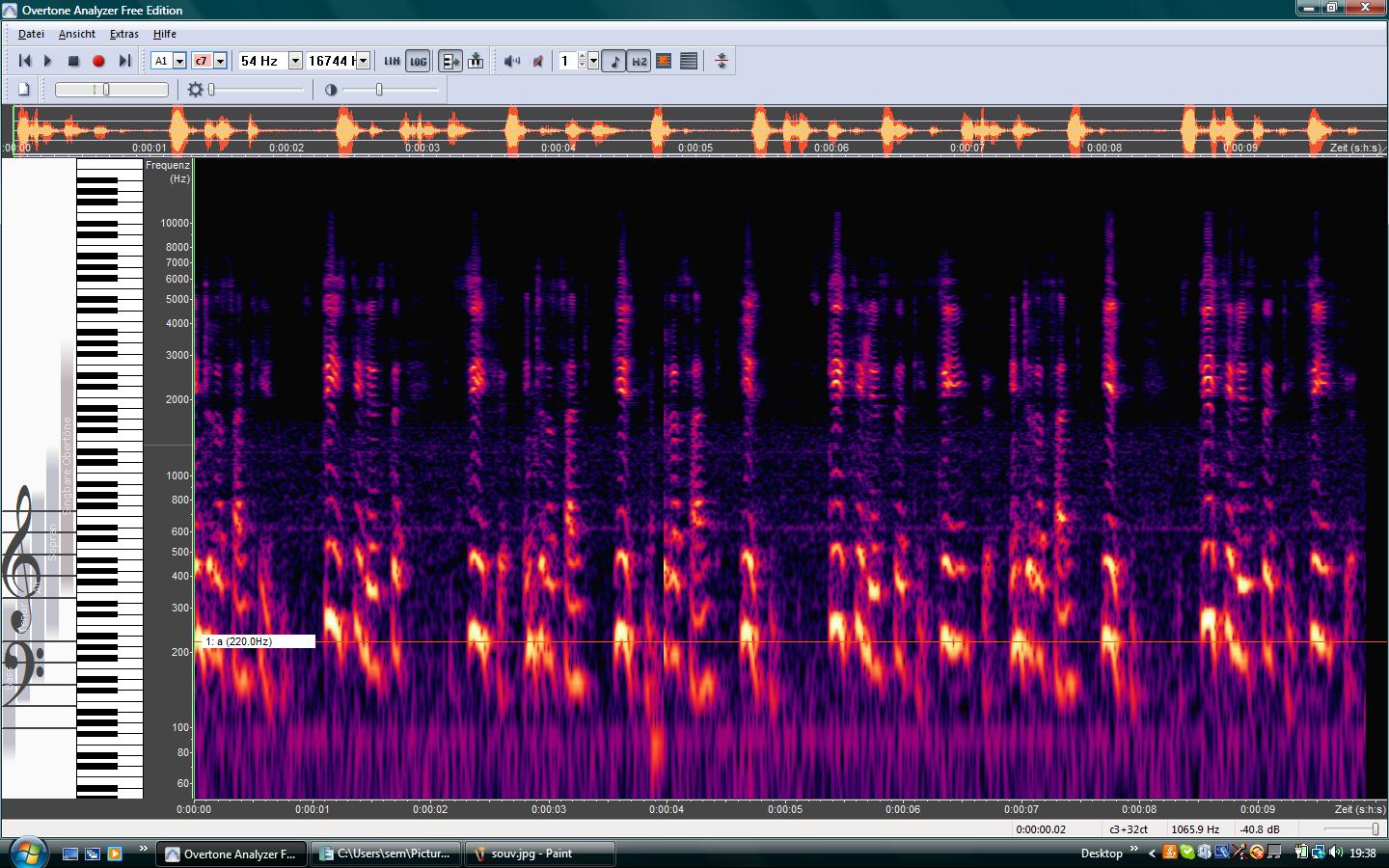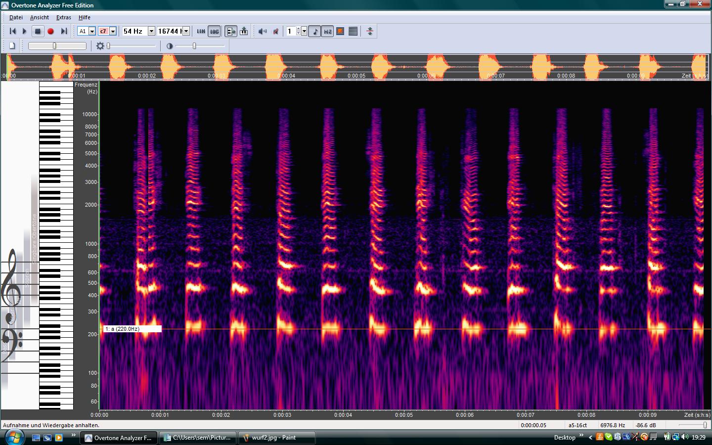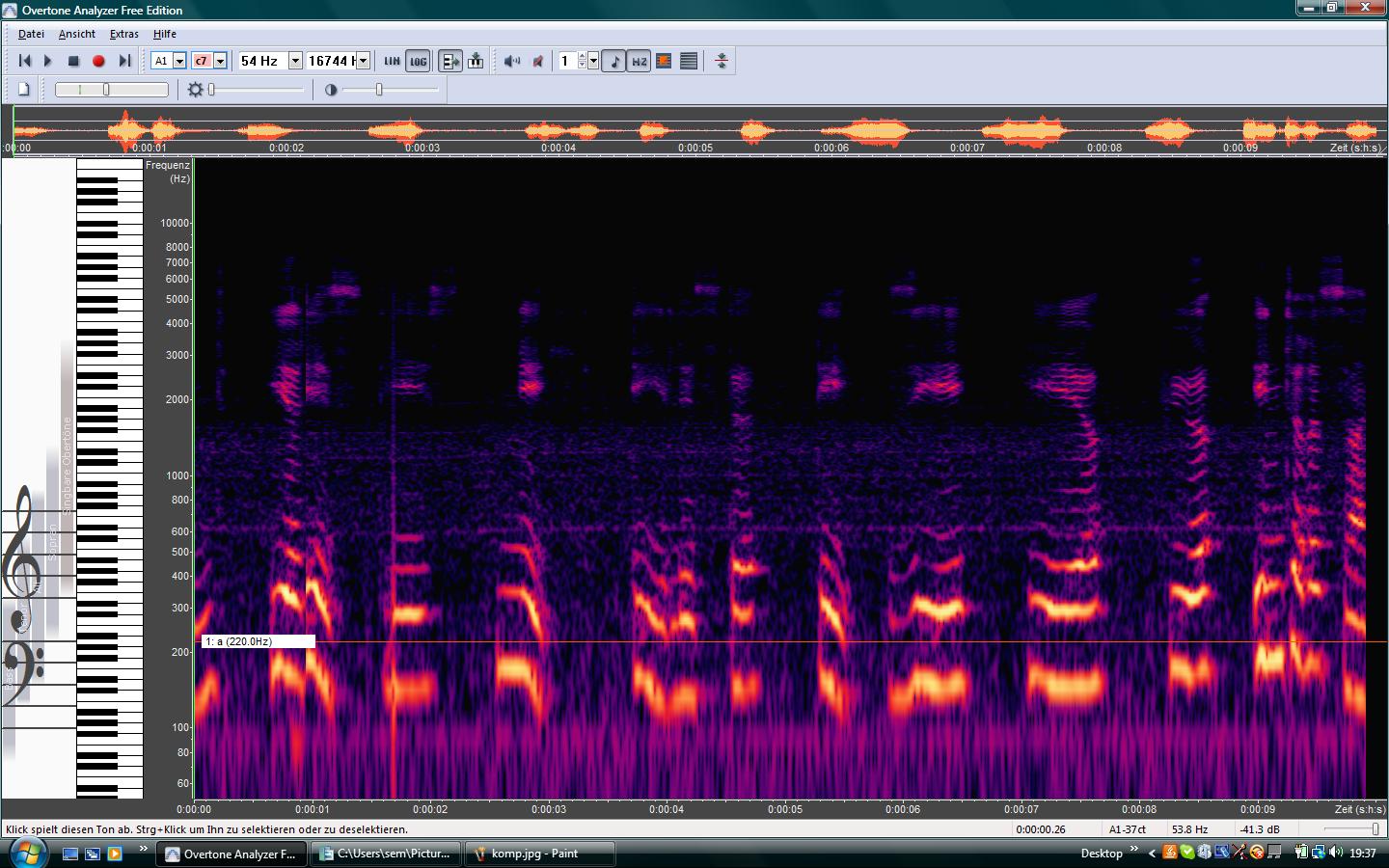 Die Tonqualität ist erkennbar an der Frequenz-Skala. Um so mehr gelb zu sehen ist um so voller und SCHÖNER klingt Ihr Sprechton für den Zuhörer. Die Klangfarbe der Eigenwahrnehmung ist dann sehr nahe an dem Klangerlebnis, das Sie dem Zuhörer bieten. Sie sollten diese Übungen laut trainieren damit sich die Klangtechnik entwickeln kann.